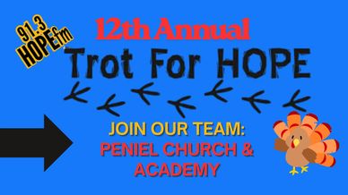 Peniel Church & Academy has an official team for this years' Trot for Hope!! We encourage you to grab a friend and trot, walk, jog, or run 2 miles... It's all for fun!